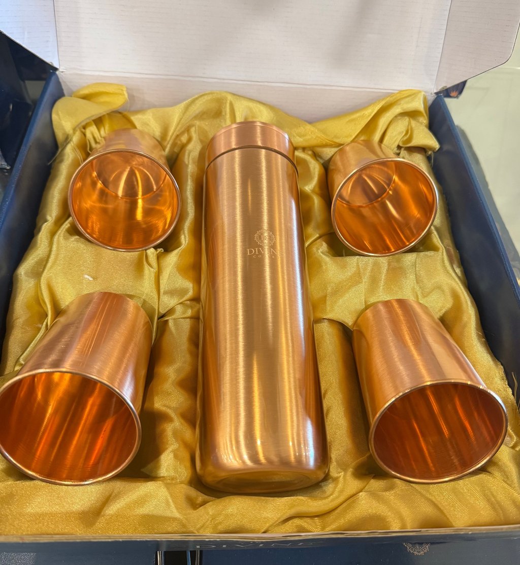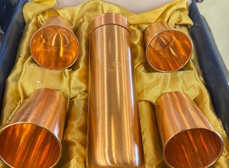 Copper, bottle, glass, jug sets for natural wellness and healthy life style