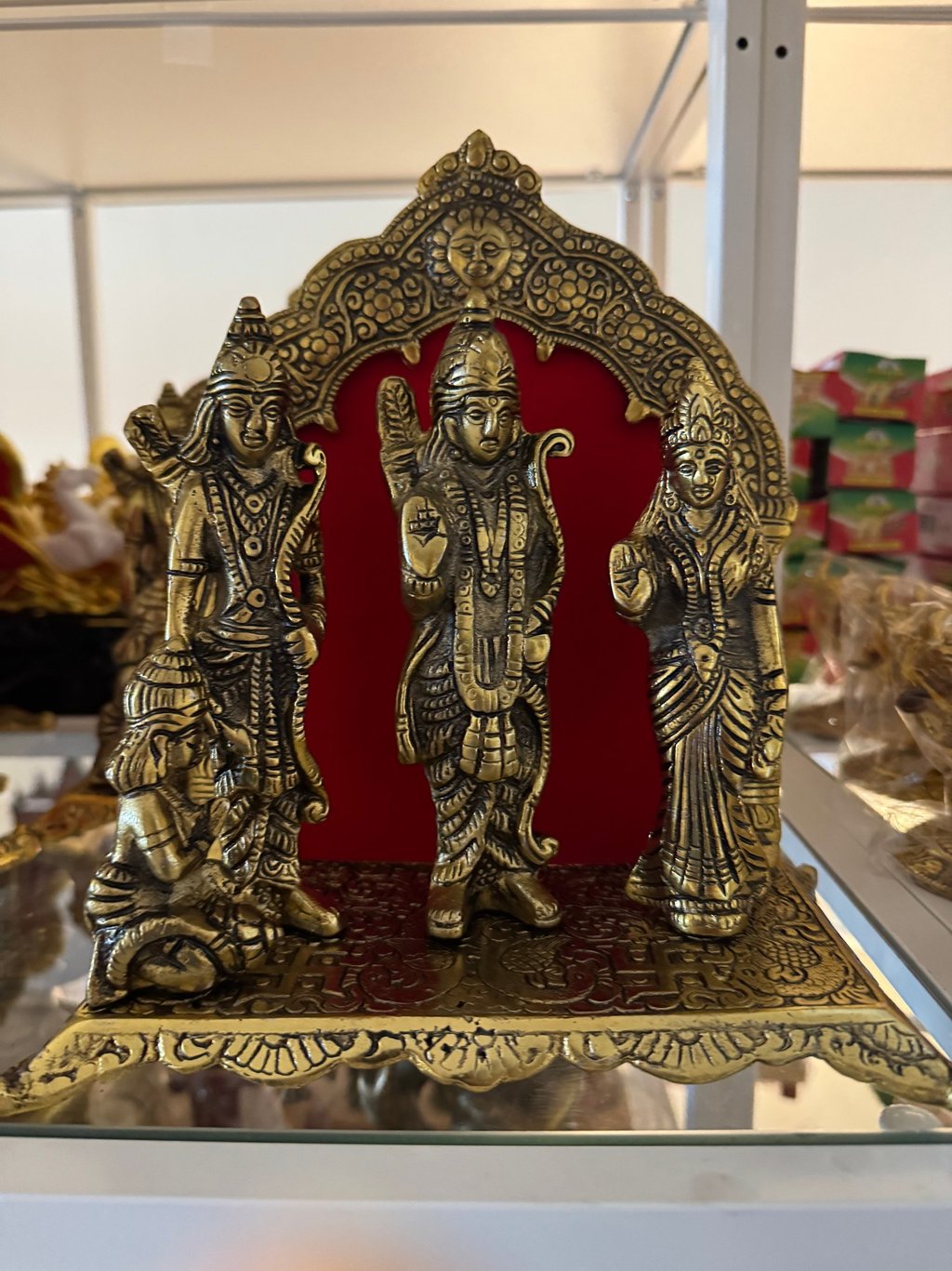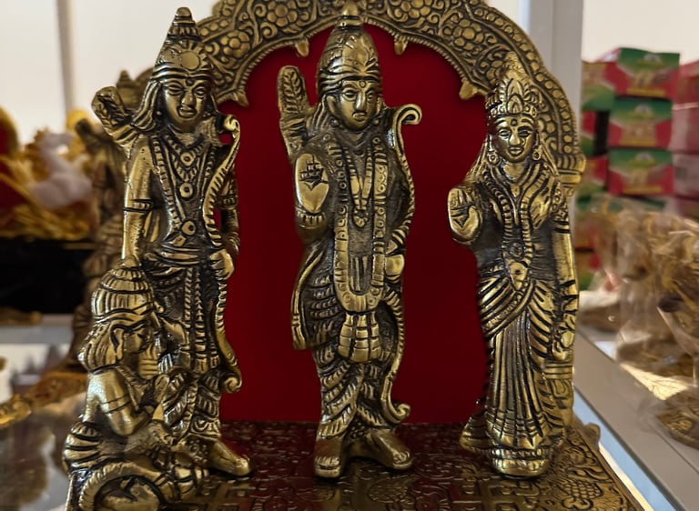Religious gods made from brass decorative statues and wall decor.