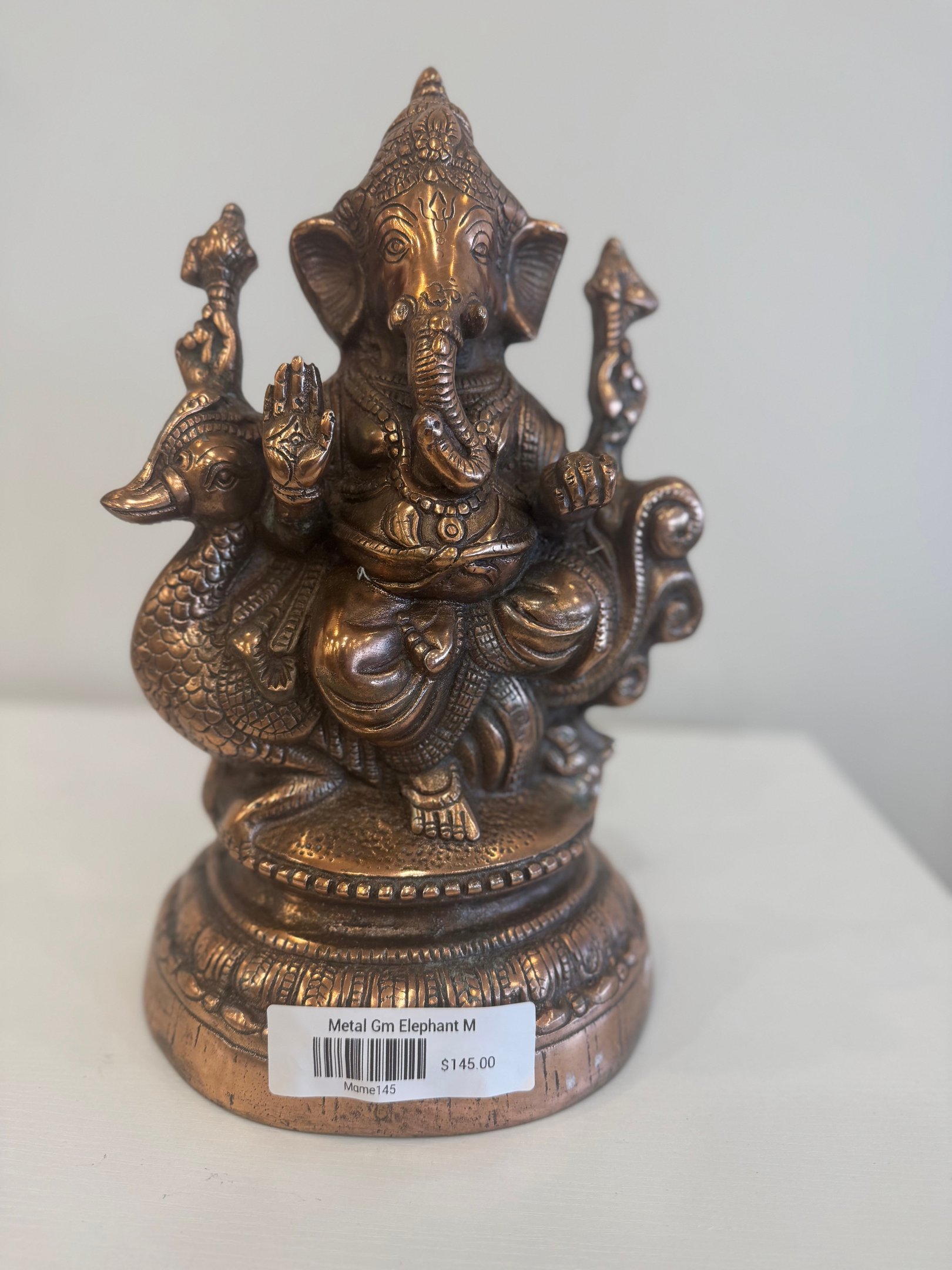 Religious gods made from metal decorative statues and wall decor.