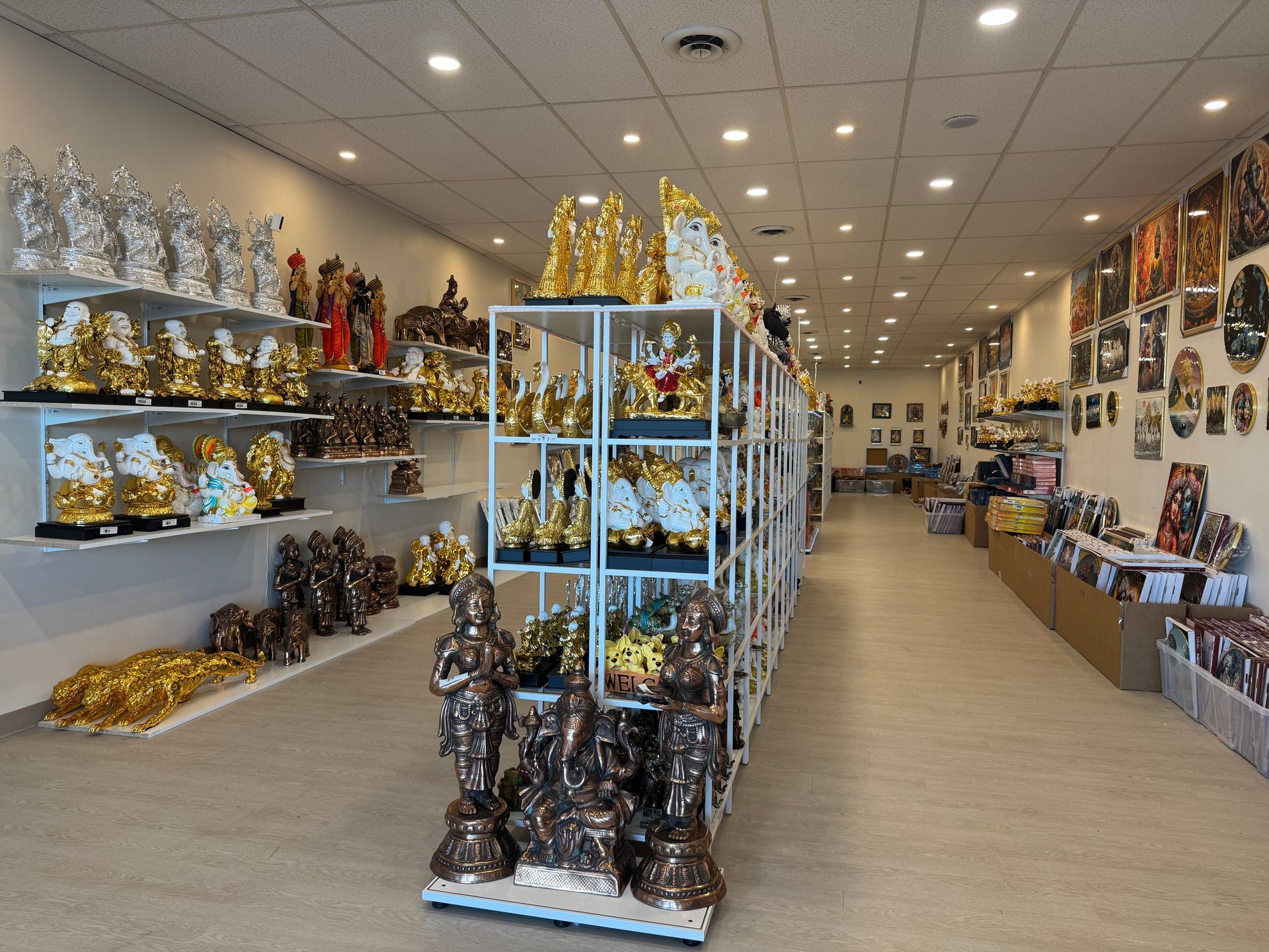 Religious gods made from brass decorative statues and wall decor.
