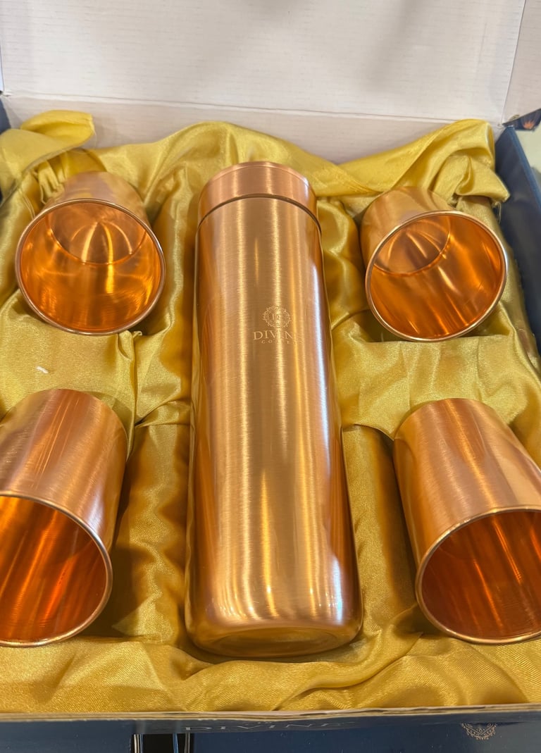 Copper, bottle, glass, jug sets for natural wellness and healthy life style